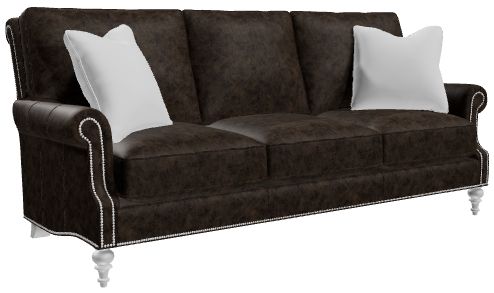 Classic traditional details and nail head trim accents are the things you'll notice first on this gracefully finessed leather sofa. It features a rollover back, cut-back rolled arms, and beautifully turned legs that offer a familiar heirloom touch. Attached box border back pillows and blend down coil seat cushions.Read More