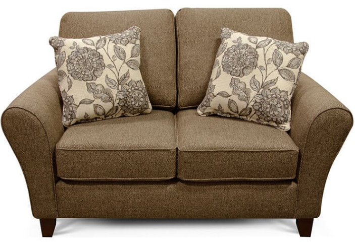 Paxton Loveseat features flared arms and exposed dark wooden legs.Read More