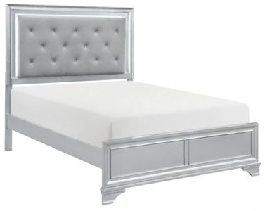 Transform your primary suite into a high-fashion retreat with this stunning metallic silver bed frame. Expertly crafted from wood and engineered wood, this bed features a sophisticated gray textured knit upholstered headboard adorned with elegant button tufting. Built-in LED lighting creates a soft, ambient glow, perfect for reading or relaxing in style.Read More