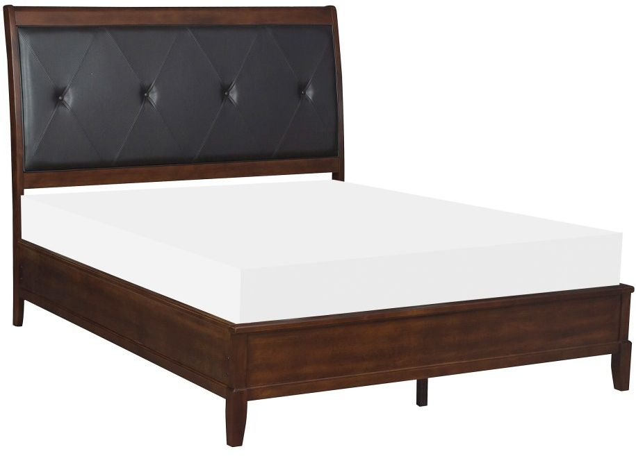 With transitional styling that is at home within a number of decorative environments, the Cotterill collection will be a versatile addition to your bedroom. The cherry finish, over birch veneer, dramatically enhances the wood’s grain and is perfectly accented by the black faux leather insert with x-stitching and button-tufting that fronts the headboard.Read More