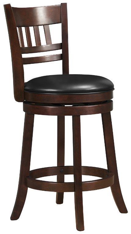 Add timeless charm and everyday comfort to your dining space with the Homelegance® Edmond swivel counter height chair. Designed with both style and function in mind, this chair features a rich dark cherry-finished wood frame paired with a sleek black bi-cast vinyl upholstered seat, offering a striking two-tone look.Read More