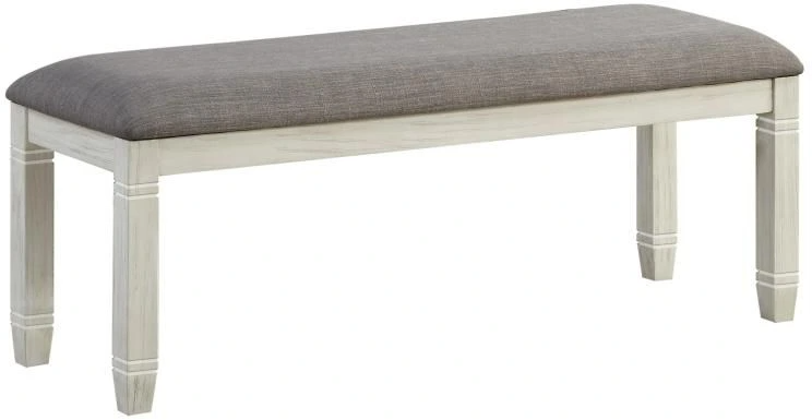 Inspired by the aesthetic of a casual country kitchen, the Granby Collection is an inviting seat for mealtime with family and friends. The acacia and pine solids base of the bench is finished in antique white and features a neutral tone fabric seat.Read More