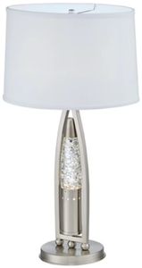 This accent lighting can change the ambiance of any room. Its ultra modern design showcases sparkling decorative mood light, with tiny rippling water-droplets to simulate the soothing dancing water motion. Beautifully crafted stand features high quality satin nickel finish metal and glass, and an elegant circular lamp shade.Read More