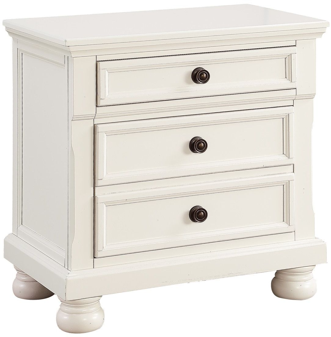Casual transitional styling lends versatility to the placement of the Laurelin collection in a number of bedroom settings. The nightstand's white finish can transition from traditional to country casual, with antiqued bronze knob hardware punctuating the look of each framed drawer front and bun feet providing support.Read More