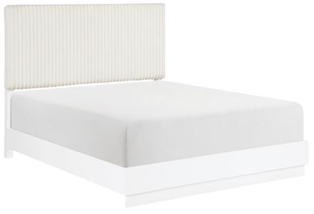 Transform your bedroom into a high-end retreat with this stunning pearl white bed. Designed to blend contemporary chic with cozy comfort, the centerpiece features a lush, cream faux fur upholstered headboard with elegant vertical channel tufting. Its sleek, solid construction provides a sophisticated silhouette that complements any modern decor, from minimalist to glam.Read More