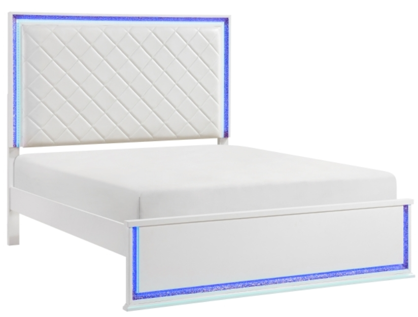 Elevate your sanctuary with this stunning modern white bed frame, designed to blend contemporary glam with functional luxury. This upholstered bed features a crisp white faux leather headboard with sophisticated diamond stitching, framed by eye-catching metallic silver trim.Read More