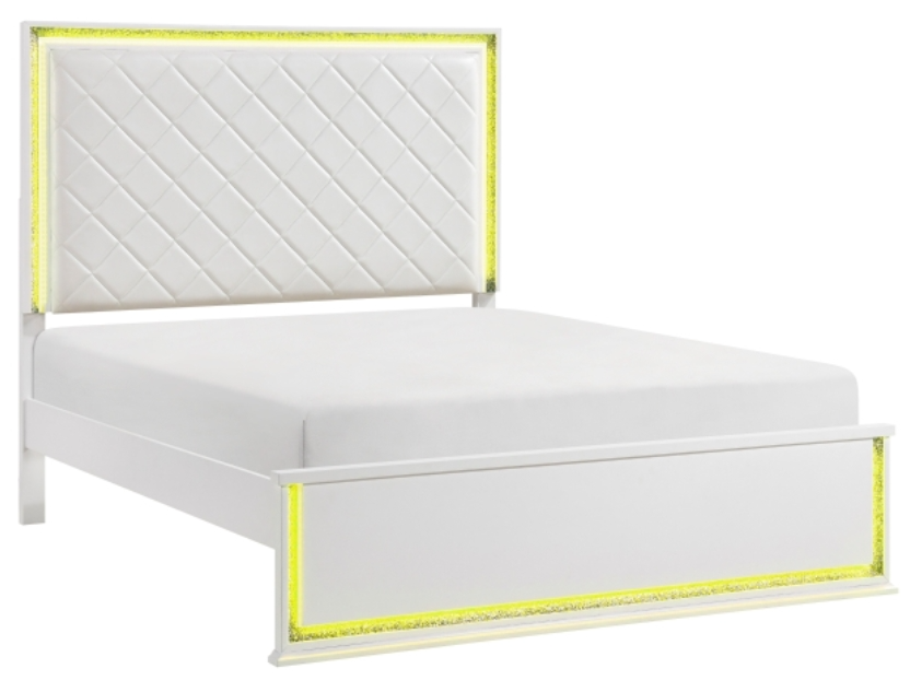 Elevate your sanctuary with this stunning modern white bed frame, designed to blend contemporary glam with functional luxury. This upholstered bed features a crisp white faux leather headboard with sophisticated diamond stitching, framed by eye-catching metallic silver trim.Read More