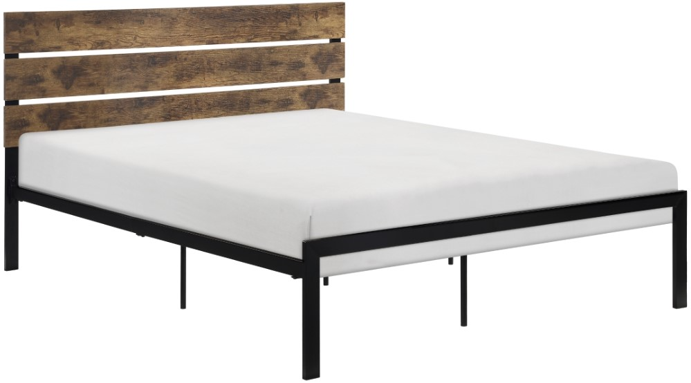 The rusticated style of the Marshall Collection pairs black metal framing with a faux wood slat headboard which lends an air of industrial aesthetic to the design. The queen platform bed features a low-profile, further lending to the unfettered look of the collection.Read More