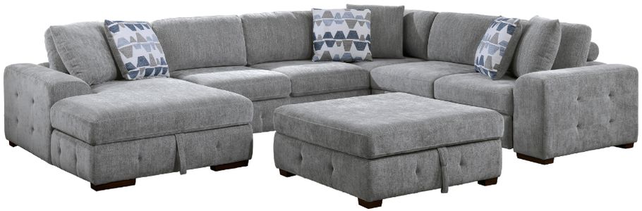 | Sectional Features | Tufted, Throw Pillows Included, Includes Storage |