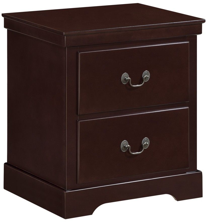 The traditional styling of the antique bronze finished bale and pull hardware complements the nightstand lending to the classic profile.