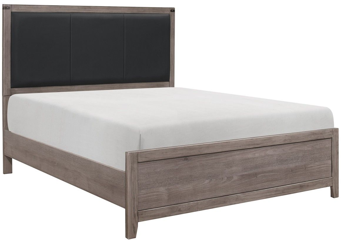 Industrial design is subtly used to achieve a cool look for your bedroom in the Woodrow Collection. Dark metal corner banding with rivet accent lends to the casual look of the full bed. Melamine laminate features a weathered-wood look that furthers the intended design. Black faux leather accent of the headboard provides distinct complementing contrast to the finish of the collection.Read More