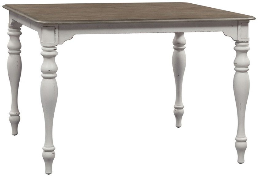 Gather in style with the Magnolia Manor gathering table. This piece features the perfect blend of European design, one 18" removeable leaf to easily accommodate guests or a large family, fancy face top finished in a weathered brown with whitewash, softly rounded corners, and is anchored by heavy turned legs.Read More