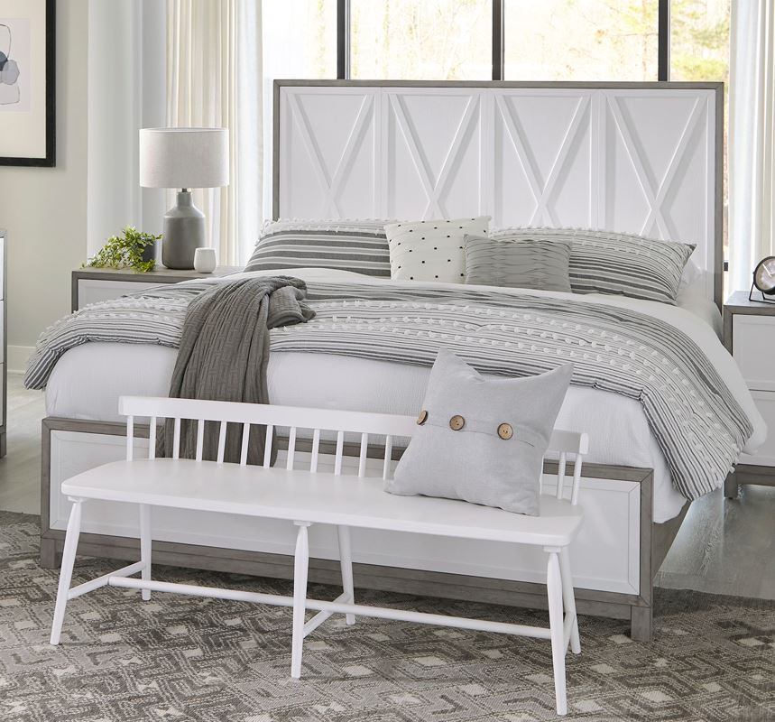 Whether you want to escape to the good life, where every day is a vacation, or you want to bring a new level of casual sophistication to your home, Palmetto Heights offers a way to express your personality without sacrificing style. The two-tone finish blends the best of casual contemporary and costal living where picture frame molding outline X-panel accents in the headboard. The footboard has picture frame molding outlining a wood framed center panel. Use the panel bed rails that feature bolt-on supports to complete the bed. The Palmetto Heights king panel bed offers a unique point of view that is sure to inspire.