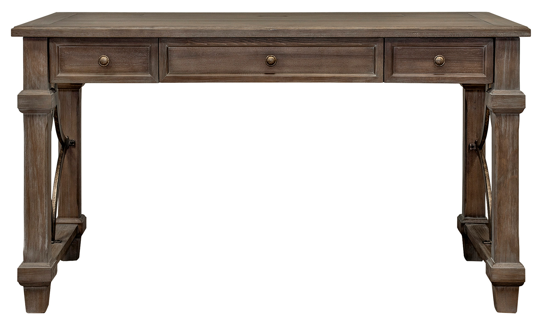 Constructed of solid lumber and veneers, Carson fits well in any home. Weathered dove finish accentuates the natural open grain, creating a casual yet elegant look. Mottled antique finish hardware and four point diamond metal accents enhance the Carson collection.