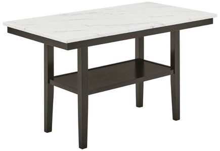 The Carissa 60" rectangle counter table with storage shelf blends modern style and smart functionality. Crafted with durable rubberwood legs and engineered wood, it features a glossy faux marble top that's heat- and water-resistant for everyday durability.Read More
