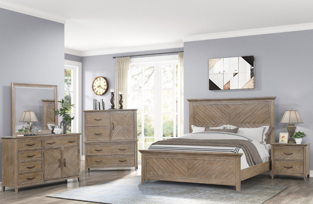 The New Classic Home Furnishings Tybee Sand Queen Bedroom Set includes a beautifully crafted bed, nightstands, and a dresser, all offering ample storage. Its warm finish creates a welcoming atmosphere, making it an ultimate choice for a cozy and functional bedroom retreat.Read More