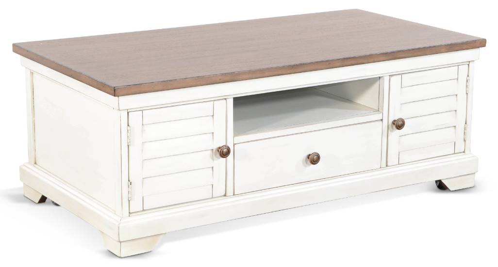 Elevate the look of any room with this charming 2-tone shutter door coffee table from Sunny Design. It's off white and elegant brown finish will definitely it add style to your room.Read More