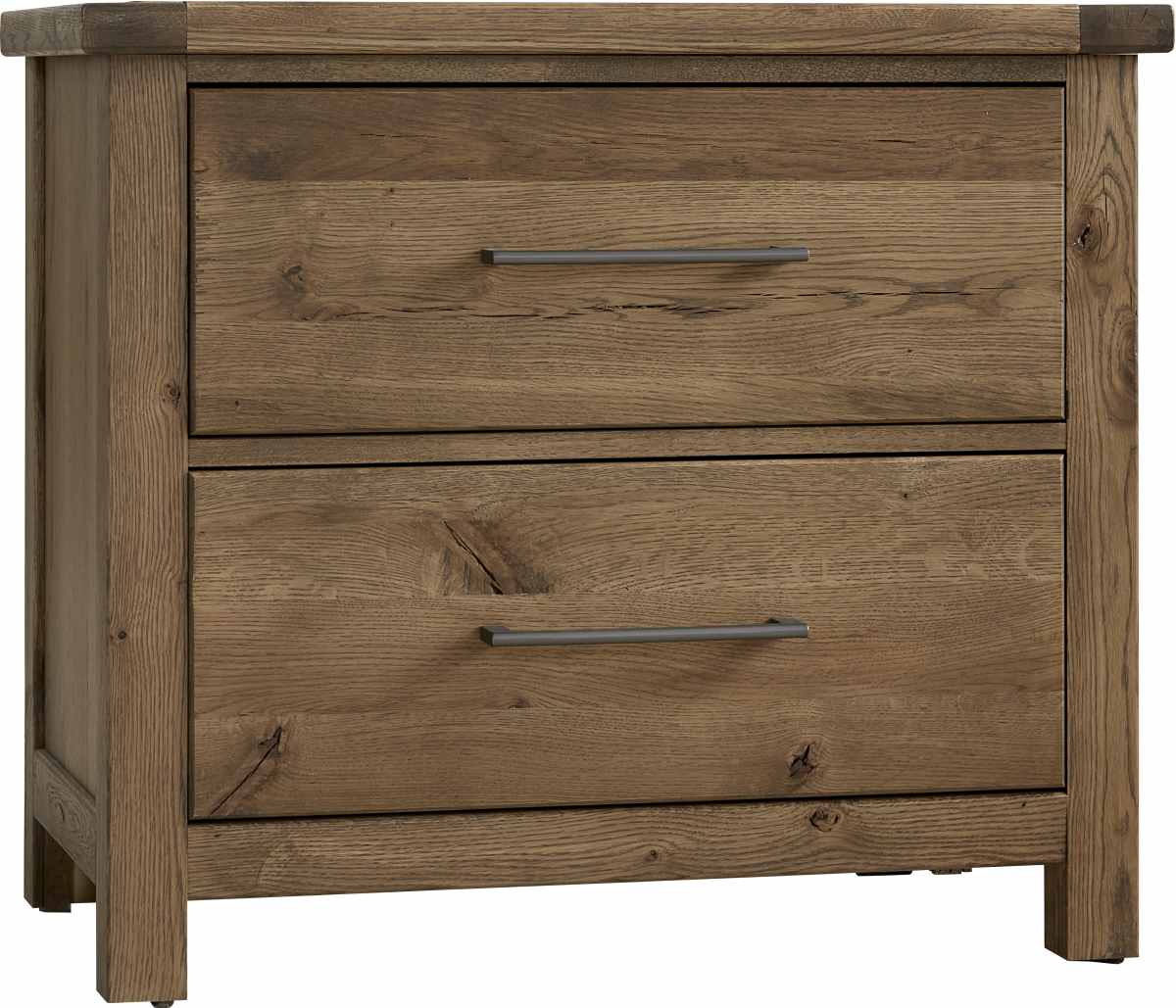Vaughan Bassett has developed a patent-pending process that allows them to accelerate how wood ages. We have kept the splits, knots, cracks, and the bold grain pattern found in Oak lumber to create this reclaimed look in this beautiful and unique bedroom collection.