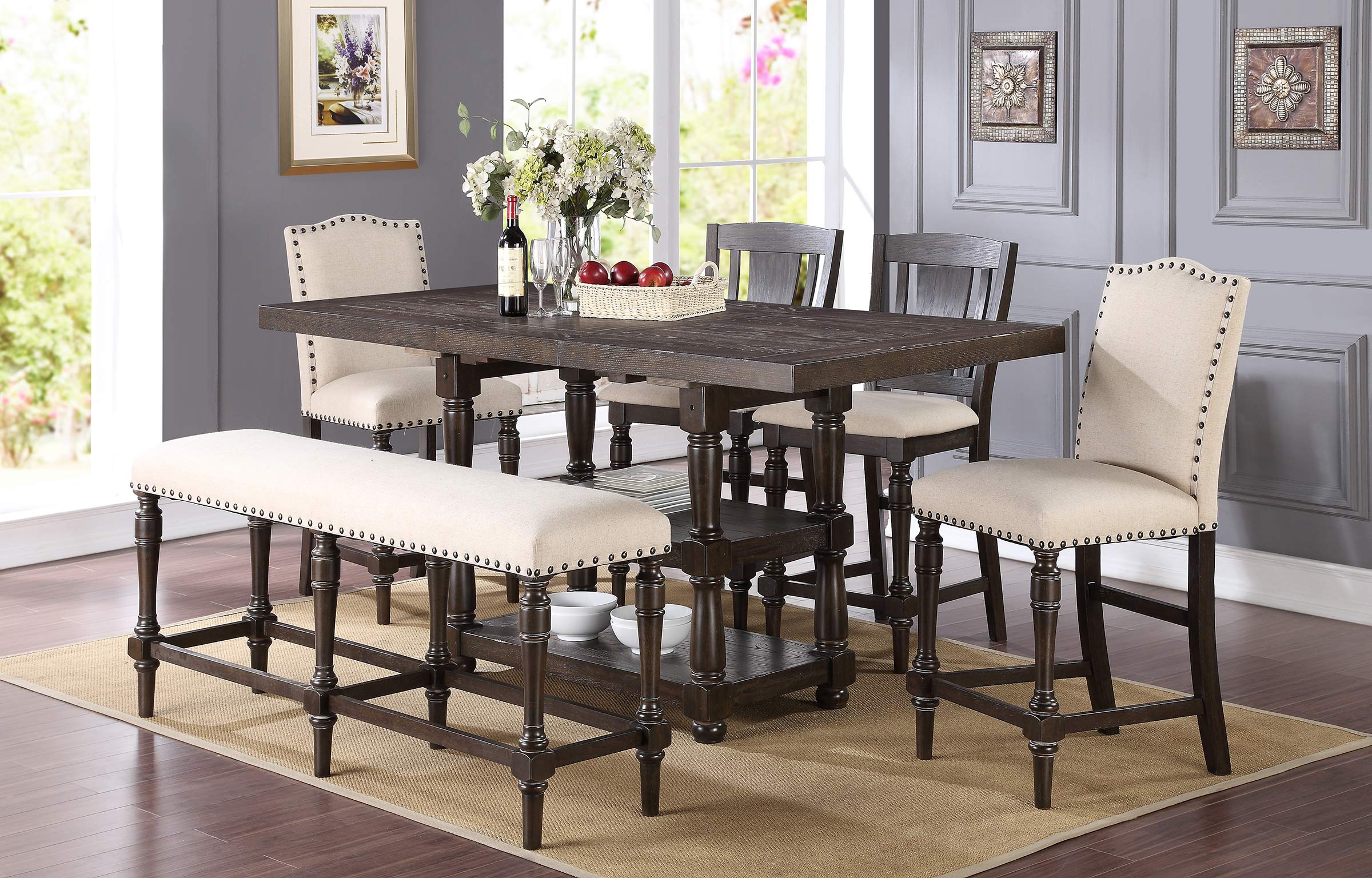 Gorgeous limed Gray or Espresso finishes enhance the contrasted oak wood grain of these grand tables. Mix and match upholstered and slat back chairs for an eclectic look.